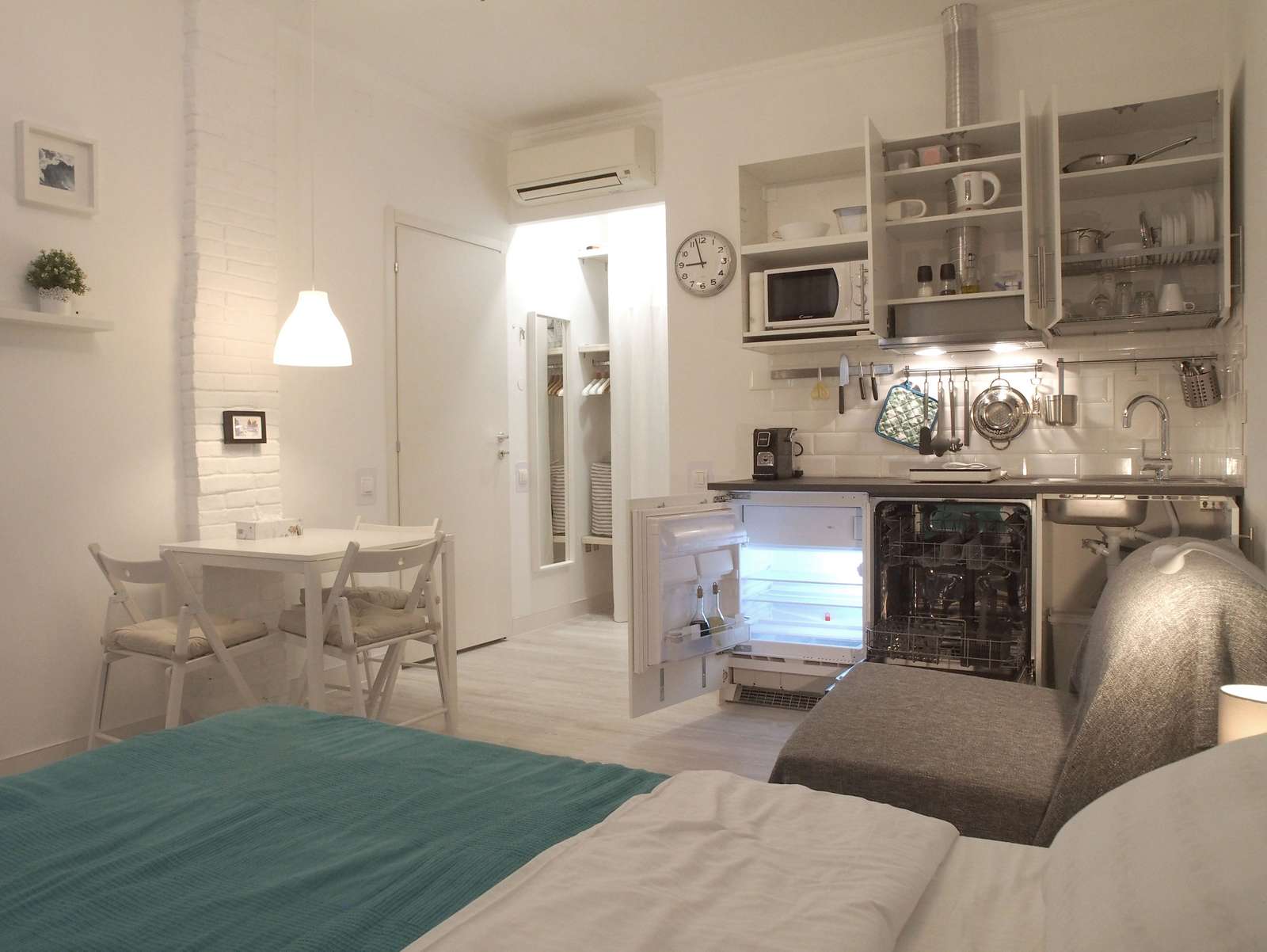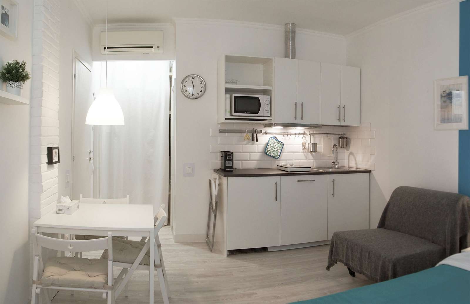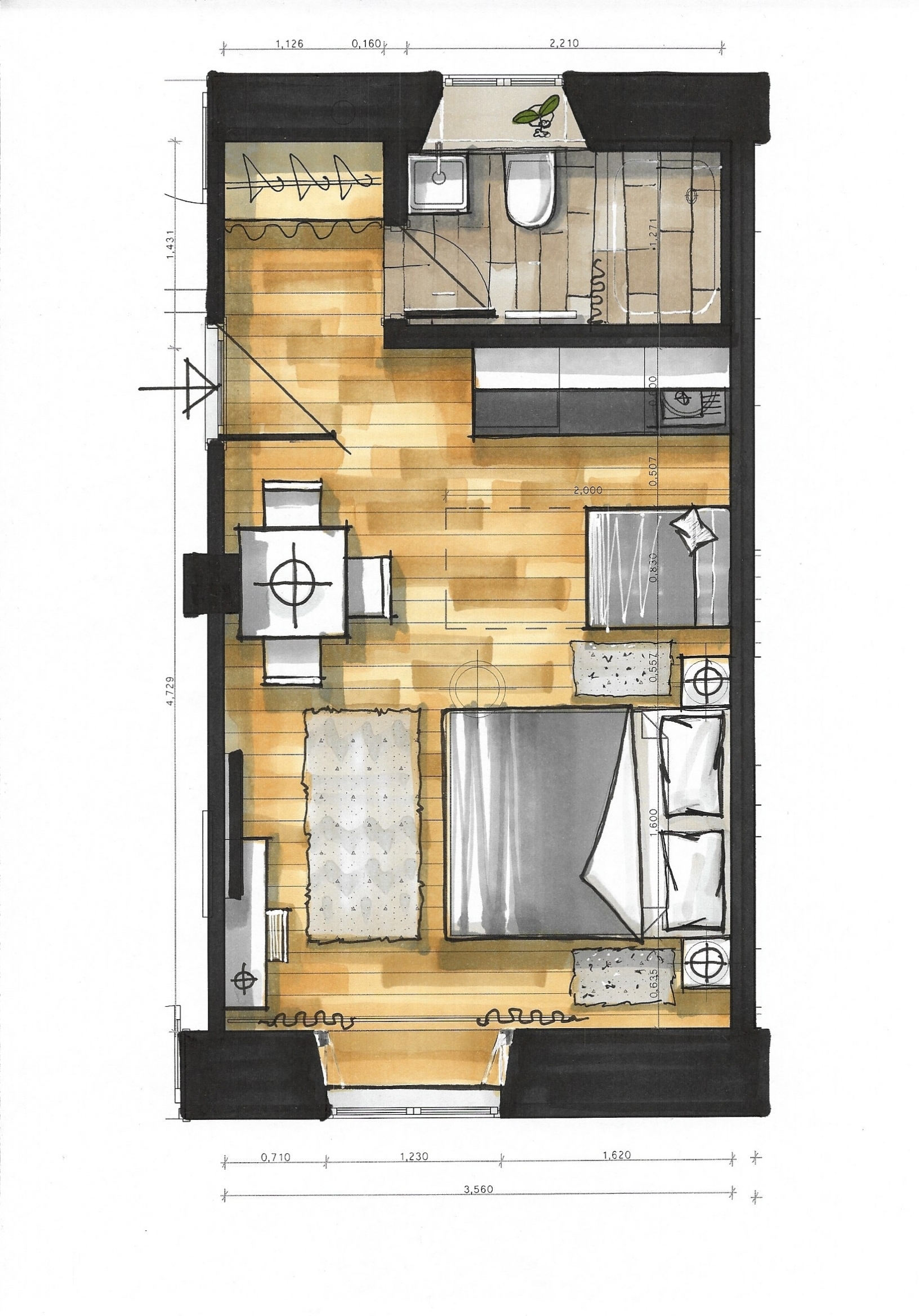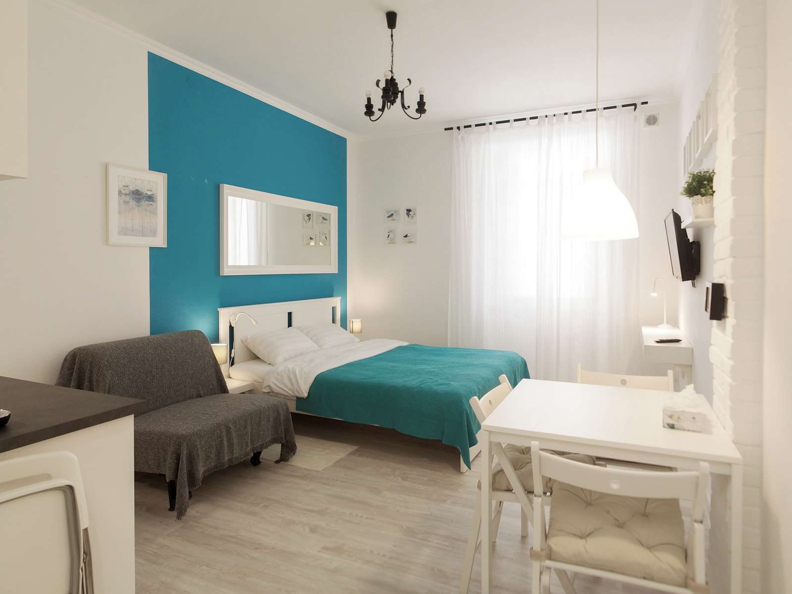 To je 22 m² velik studio, ki lahko sprejme 2 odrasla na zakonski postelji in 1 otroka na raztegljivem kavču.